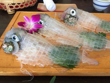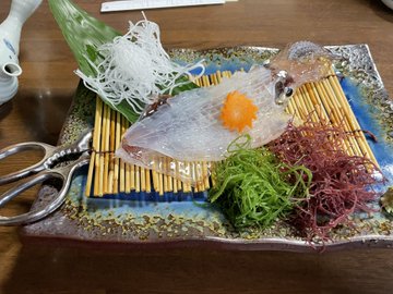 • イカの活け造りと、その後ゲソの天ぷらをいただきました。