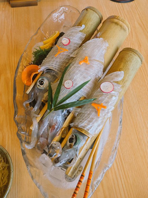 席の近くで生簀に入ったイカがたくさん、どんどん刺身にされていきました…😂